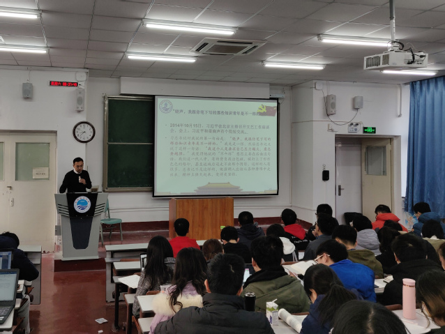 本站讯 12月7日上午,贵妃直播 辅导员张川主讲的题为“人民公仆—习近平的成长之路”形势与政策课在鱼山校区新教学楼顺利开讲。