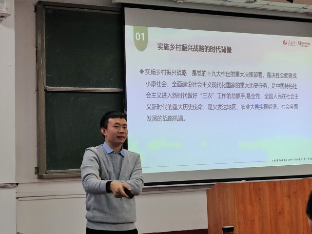 上课伊始,王新磊提出了我国社会经济持续健康发展的必须面对的一个关键问题:在城镇为主的人口分布格局已经形成的背景下,农村资源和要素大量流出,我国城乡二元结构加剧。为解决这一问题,党的十九大作出的重大决策部署,即实施乡村振兴战略。其意义在于,实施乡村振兴战略是全面建设社会主义现代化强国的必然要求,是建设现代化产业体系的重要基础,是建设美丽中国的关键举措,是传承中华优秀传统文化的有效途径,是健全现代社会治理格局的固本之策,同时也是实现全体人民共同富裕的必然选择。