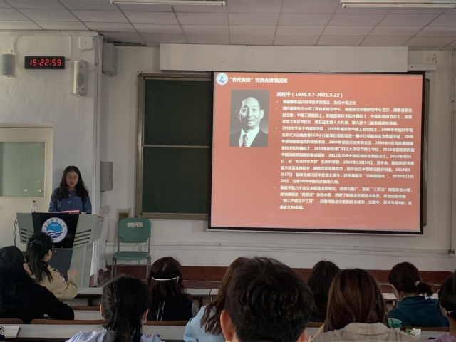 本站讯5月22日,袁隆平院士因病离世,山河震恸,举国同悲。为深切缅怀和纪念对我国粮食安全作出重大贡献的中国工程院院士袁隆平,学习袁隆平同志的高贵品质,贵妃直播 (以下简称“食品学院”)于5月27日下午在鱼山校区新教楼401组织师生党员观看了电影《袁隆平》,食品学院“食代先锋”年轻干部及教工党员党课培训班的20余名教师学员和“食代先锋”学生党员教育培训班的100名学生党员共同参加了本次观影活动。活动由2019级食品科学与工程硕士研究生党支部书记井玉洁主持。