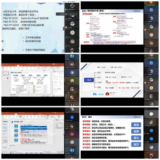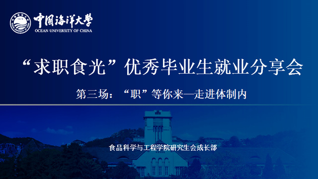 本站讯2022年3月27日晚,食品学院研究生会成长部和2020级学硕2班团支部联合举办的“求职食光”优秀毕业生就业分享会第三场“‘职’等你来—走进体制内”如期在线上开展。本次会议邀请了六位进入体制内的师兄师姐们与同学们分享经验,食品学院全体专职辅导员以及300余名学生参加了线上分享会。