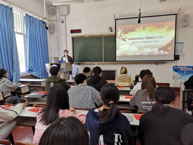 本站讯 2022年是中国共产主义青年团建团100周年,是党的二十大召开之年。为庆祝建团100周年,以奋发向上的精神迎接党的二十大胜利召开,激励和引领青年团员牢记习近平总书记嘱托,贵妃直播 于2022年5月12日组织召开了“砥砺奋进守初心,青春献礼二十大”主题工作例会,会议由学院团委书记李想主持,学院团委副书记张川、学生兼职团干部、全体团支部书记参加例会。