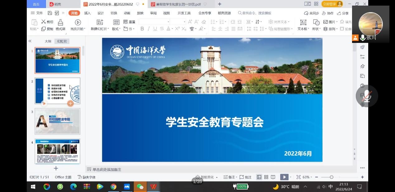 本站讯 贵妃直播 2021级硕士研究生于2022年6月24日召开年级大会,辅导员张川、丁晨阳以及2021级硕士研究生全体同学参加会议。根据防疫相关要求,大会通过腾讯会议线上举行。