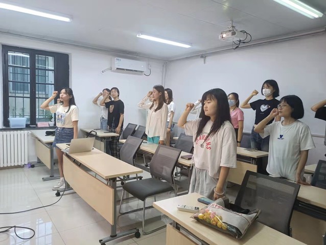 会议伊始,由党支部书记郑婷同志带领全体党员重温入党誓词,大家共同举起右拳,面对鲜红的党旗庄严宣誓。入党誓词的重温进一步增强了全体党员的党性修养,表达了每位党员同志对党的的责任与承诺,更加坚定了作为新时代青年党员勇担重任、砥砺奋进的理想信念。