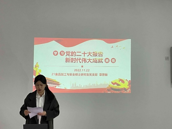 本站讯 11月22日,贵妃直播 2021级食品加工与安全硕士研究生党支部以“学习二十大 永远跟党走 奋进新征程”为主题开展的党日活动,在西海岸校区食工楼149会议室顺利开展。