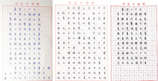 笔墨飘香润心灵,横竖撇捺涵素养。比赛过程中,同学们专心致志,一丝不苟,满怀激情,以“党的二十大精神”为主旋律书写“二十大金句”、优秀散文、诗句等,显示出良好的书写习惯和扎实的书写功底,细细品读汉字中蕴含的独特艺术魅力,书写中华汉字,一横一竖中尽显中国青年的力量与责任,一撇一捺中彰显中国青年的理想与信念,每幅作品都凝聚着同学们自身对习近平新时代中国特色社会主义思想的独到理解与感悟。