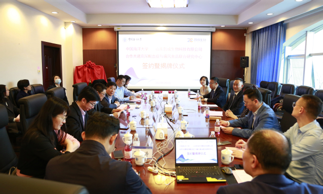 -山东哲成生物科技有限公司高尿酸血症与痛风食品联合研究中心(以下简称“联合研究中心”)签约暨揭牌仪式在崂山校区举行。山东哲成生物科技有限公司董事长武传涛,学校党委常委、副校长王剑敏出席仪式。