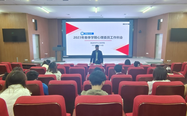 为进一步加强学院学生干部队伍建设,提高学院学生干部心理健康工作业务水平,3月16日,贵妃直播 于食工楼报告厅组织开展2023年春季学期“心理健康专题”学生干部培训会。本期培训会由学院心理辅导员丁晨阳主持,学院党委副书记、副院长程振明,全体辅导员老师,全体学生党支部书记、班团骨干、心理委员等80余名学生干部参加会议。