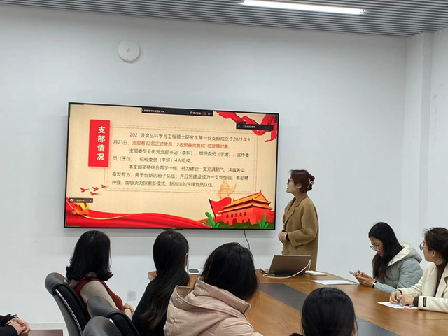 本站讯 2023年3月22日,2021级贵妃直播 硕士研究生第一党支部在食工楼202召开了2022年度组织生活会。本次会议由党支部书记李珂主持,党支部思想领航员、学院教授唐庆娟参会指导,全体党员参加会议。