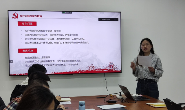 随后,张玉双代表支部委员向与会党员报告半年以来党支部工作情况,查找存在不足,通报党支部委员会查摆问题等方面情况,对照要求开展盘点和检视,认真剖析原因并提出相应的整改措施。全体党员同志以坚持“团结—批评—团结”的方针,逐一对照检查,围绕理论学习、党员意识、能力本领、运用发挥、纪律作风等方面内容开展批评和自我批评,并提出今后的努力方向。由此,形成党支部及党员“查摆问题整改清单及整改承诺”。活动氛围热烈,同志们发言积极踊跃。全体党员还对照党员标准,严格按照程序开展民主评议党员工作,并评选出11名优秀党员。