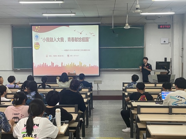 2022级食品科学与工程3班团支部也顺利举办了本次“小我融入大我,青春献给祖国”主题团日活动,团支书甄奕帆作为活动主讲人向大家分享了自己的感悟,大学就像一个大家庭,许许多多的我们汇聚在这里,为了民族复兴事业的伟大理想而奋斗,如今的盛世,是先辈们用血肉换来的。经历完一年大一生活后明白了,也更深刻的体会到大学的意义,能理解周总理那句为中华之崛起而读书,能看到边防战士清澈的爱只为中国的一腔热血,能感受到强国有我的青春担当,如今正处于“两个一百年”奋斗目标的伟大历史交汇处,青年当奋发图强,以青春之小我,构筑祖国蓝图,为中华民族的伟大复兴贡献出属于自己的青春力量。
