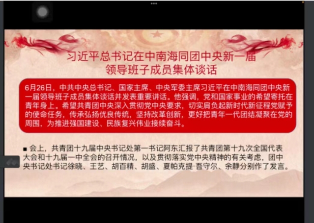2022级食品科学与工程2班团支部在团支书吴航的组织下以线上会议形式开展了“小我融入大我,青春献给祖国”主题团日活动,在会议中,吴航带领大家学习了习近平总书记在中南海同团中央新一届领导班子成员集体谈话,让同学们充分意识到,党和国家事业的希望寄托在青年身上,青年人有理想、敢担当、能吃苦、肯奋斗,党和国家事业发展才能充满希望。广大青年应当增强历史责任感与使命感,激发强国有我的青春激情,在强国建设、民族复兴伟业中勇当先锋队、突击队。