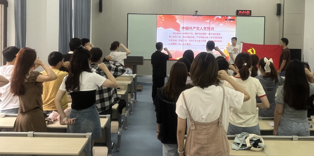随后,齐祥明同志带领全体党员一同重温入党誓词,唤醒入党初心,进一步增强党员的责任感、光荣感和使命感,引导党员时刻牢记党员身份,对党忠诚负责、对人民负责、对岗位职能负责,进一步强化党员意识,自觉履行党员义务,呼吁学生党员争当优秀食品人”的标兵。
