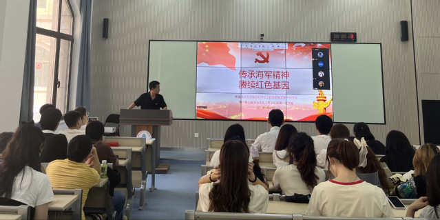 勇闯深蓝,是人民海军使命所系。活动伊始,全体党员一同观看了《壮丽新航程》-航速,全面展示了人民海军挺进深蓝的铿锵步伐。观影结束,教工支部齐祥明同志全体党员介绍党的发展史、奋进史,以及中国人民解放军海军的发展历程,并通过分享个人入党经历鼓舞学生党员不忘初心、砥砺前行
