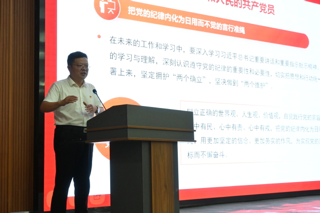 于德华首先带领师生党员们回顾了中国共产党自成立以来在纪律建设方面的发展历程,强调了纪律建设对于保持党的先进性和纯洁性的重要性。他指出,党的纪律是党的生命线,是维护党的团结统一、完成党的任务的保证。于德华重点讲述了党的十八大以来,党在纪律建设方面取得的显著成效,并强调这些成果来之不易,需要全体党员倍加珍惜和巩固。