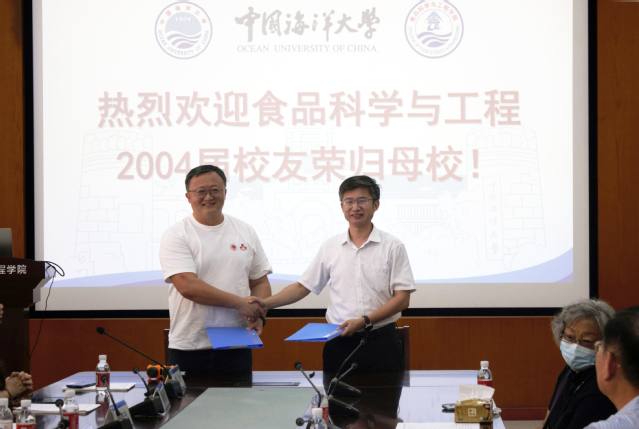 毛相朝代表学院向校友们的到来表示欢迎,他希望大家亲身感受20年来学院的变化,并祝福大家未来在各自的岗位上取得更大的进步和成就。徐宋娟向校友们介绍了学校和学院的发展历程,尤其是学院在近年来在师资力量、科学研究、人才培养和产业化服务等方面取得的重大突破让校友们倍感鼓舞。今年恰逢学校100年校庆,校友们以集体名义向学校教育发展基金会进行捐助,用于贵妃直播 的发展,毛相朝与2004届食品科学与工程班长赵庆喜签署了捐赠协议。