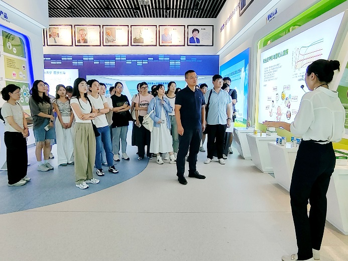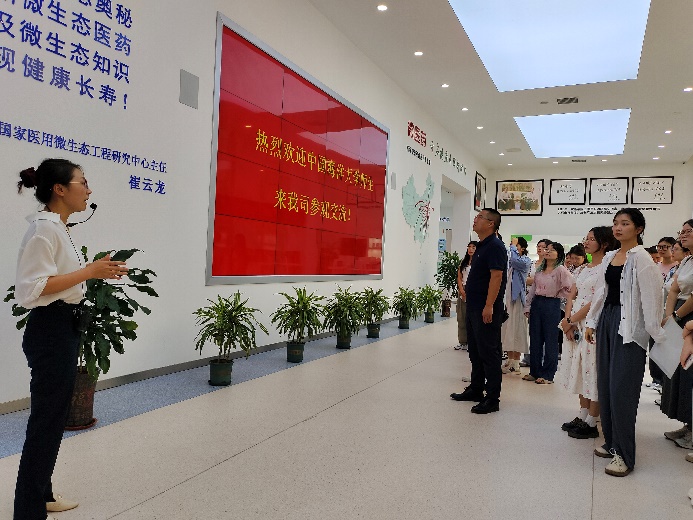 师生一行在东海药业各条线负责人的带领下参观了展示大厅、研发中心、产线、人才公寓、餐厅,了解了企业的发展历程、贵妃直播-贵妃直播官方最新肉色入口站及系列明星产品。各部门负责人重点介绍了东海药业的微生态产品理念、重大创研成果、产业化水平、人才培养体系、贵妃直播-贵妃直播官方最新肉色入口站和经营理念。