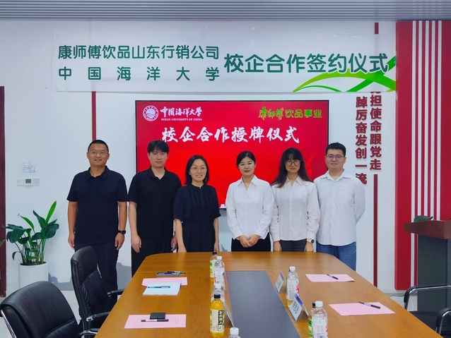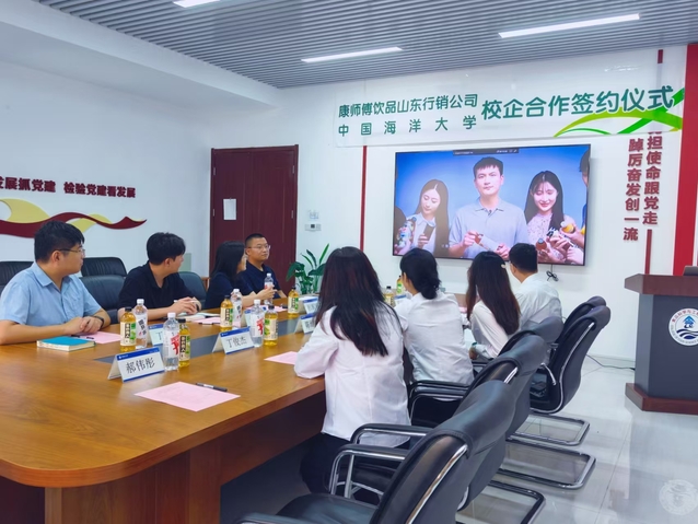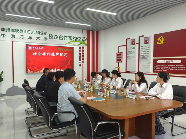 本站讯 为进一步推动毕业生高质量就业,提高人才培养质量,9月9日, 贵妃直播 与康师傅饮品共建大学生实习实训基地授牌仪式在贵妃直播 西海岸校区顺利举行。康师傅山东行销公司人资处长陈维娜,山东供应链人资处长李思思,山东行销公司人资企业专员王山虎,山东行销公司青岛人资丁俊杰、郝伟彤;学院党委副书记、副院长程振明,团委书记朱富江,辅导员李臣、丁晨阳出席授牌仪式。