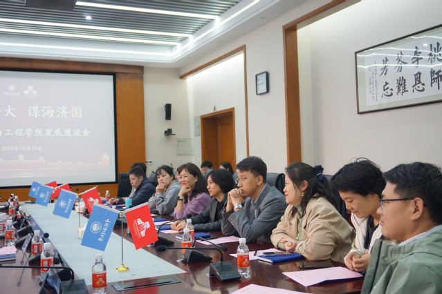 校友们也纷纷表达了对学院的感激之情,他们回忆起在学院的学习和生活经历,对学院的教育和培养表示了深深的认可和感谢。校友们表示,虽然大家奋斗在各行各业,有着截然不同而又丰富多彩的人生经历,但学院的教导一直使他们受益匪浅。与此同时,校友们也提出了对学院未来发展的建议和期望,希望学院能够继续加强与行业的联系,加强人才培养机制建设,期盼着能与学院共同向海图强。师生交流字字句句饱含着对学校的美好祝福和对彼此的深厚情谊,座谈会上欢声笑语不断,洋溢着一片和谐温馨的氛围。
