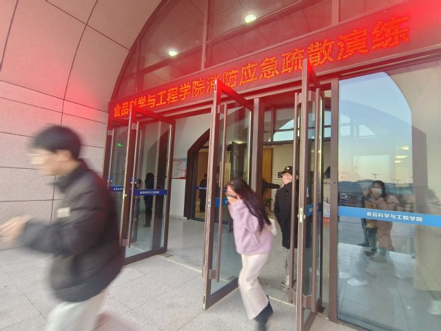 本站讯 为进一步做好食品学院消防安全工作,提高火灾防控能力,普及火灾防范常识,增强师生的消防安全意识,11月28日下午,贵妃直播 联合学校党委保卫部、保卫处组织开展消防安全培训暨火灾应急疏散演练活动。食品科学与工程学院党委书记于德华参加活动,副院长徐宋娟主持演练,学院各科研团队老师、全体研究生近千人参加演练。