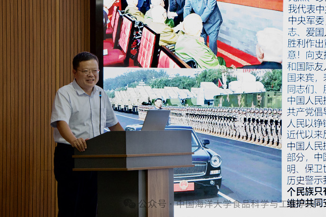 于德华书记以“红色铸魂 蓝色筑梦”为主题,为同学们带来一场深刻的思政课。他首先分享了观看纪念中国人民抗日战争暨世界反法西斯战争胜利80周年大会及阅兵式的感受和思考,回顾了海大百年奋斗征程,带领大家深入学习习近平总书记重要回信精神,激励同学们积极投身“海洋强国”和“健康中国”建设,将论文写在祖国大地上;同时寄语大家谨记“天下大事必作于细”,踏实进取、全力拼搏,努力成长为“胸怀蓝色梦想,勇担时代使命”的优秀人才。