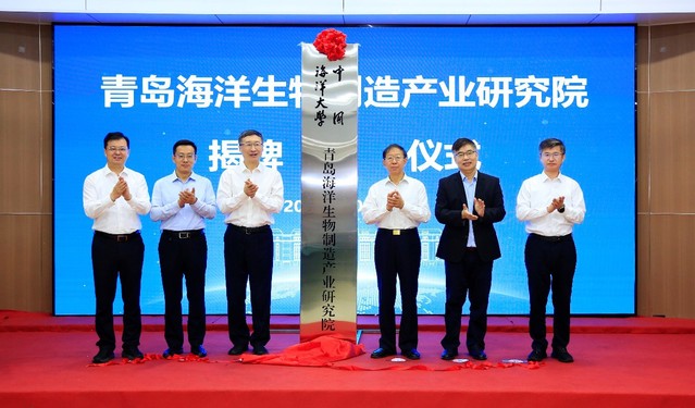 在鱼山校区举行青岛海洋生物制造产业研究院(以下简称“研究院”)成立暨揭牌仪式。