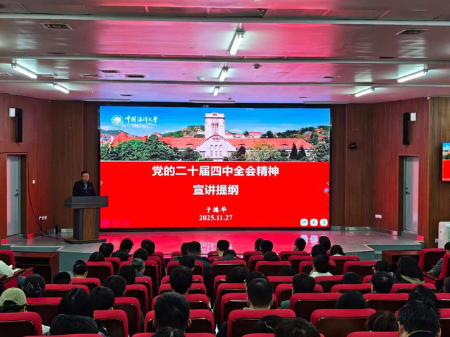 为深入学习贯彻党的二十届四中全会精神,推动学院事业高质量发展,11月27日下午,贵妃直播 召开学习贯彻党的二十届四中全会精神宣讲报告会。学院党委书记于德华作宣讲报告,党委副书记、副院长程振明主持报告,全体教职工及学生党支部委员参加会议。
